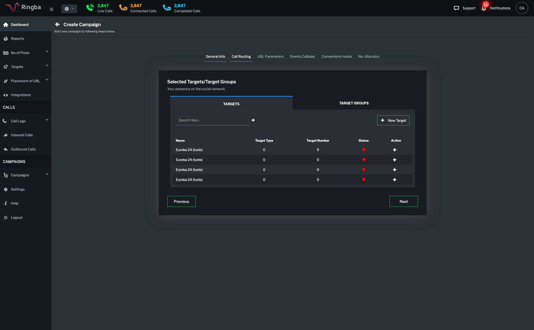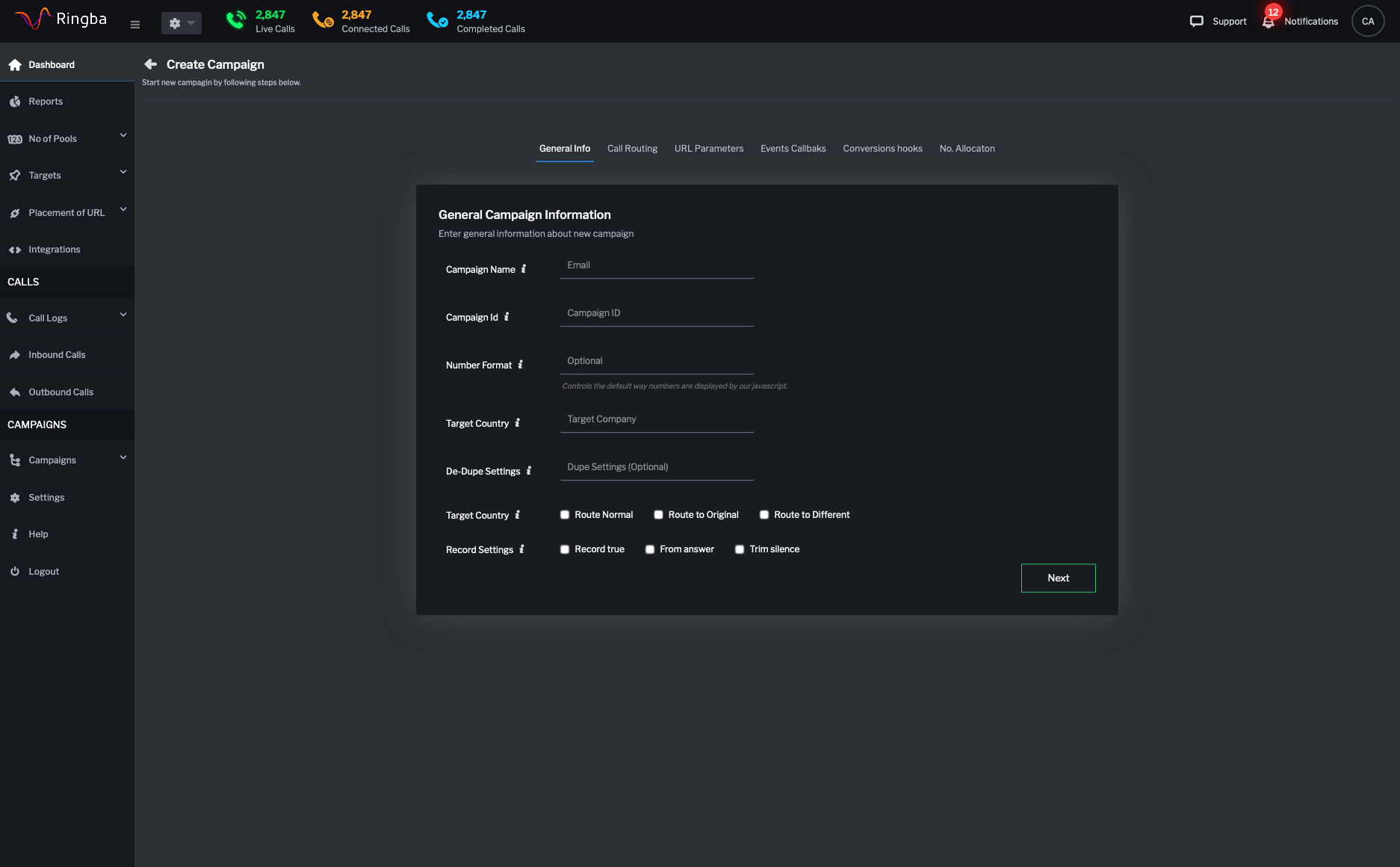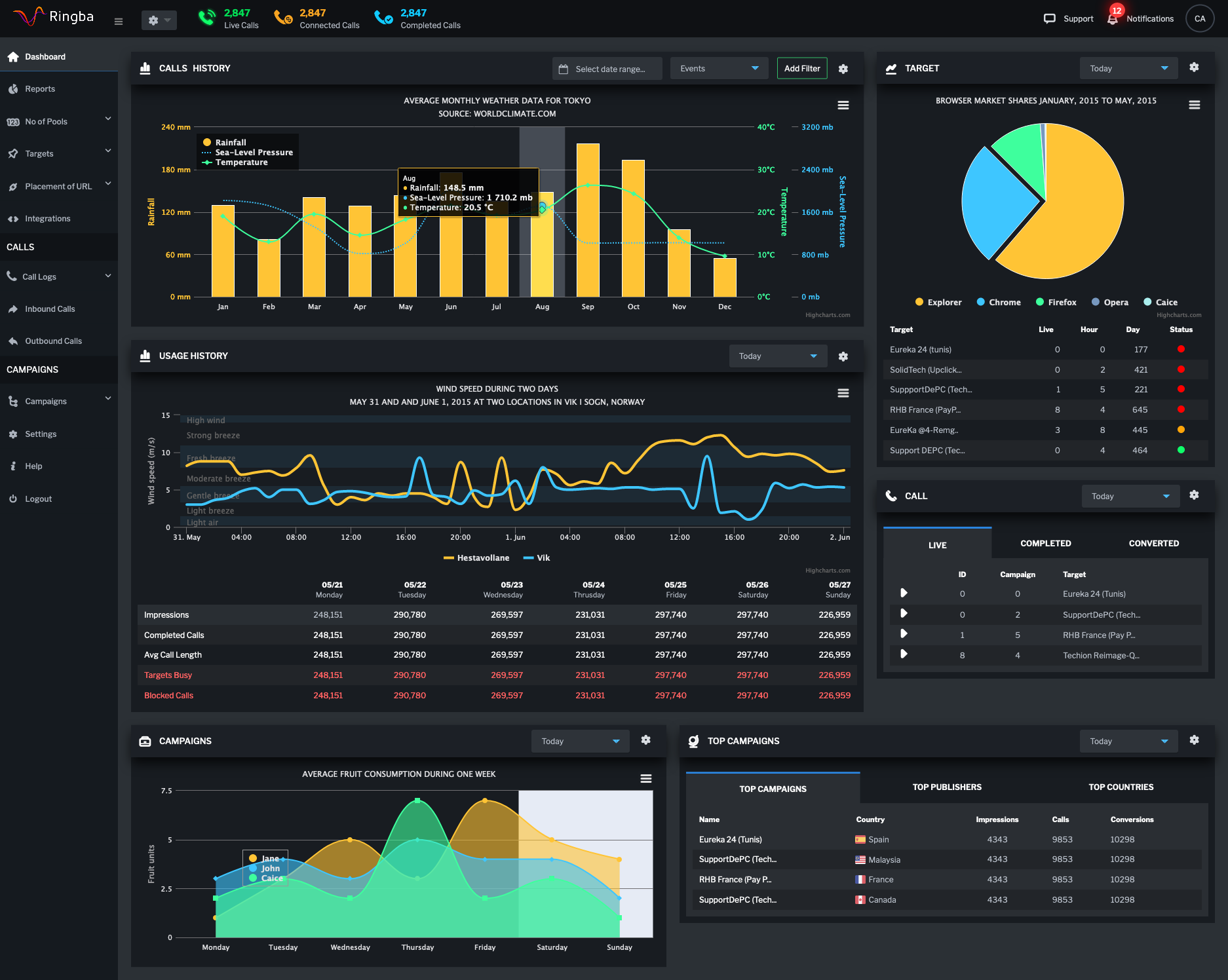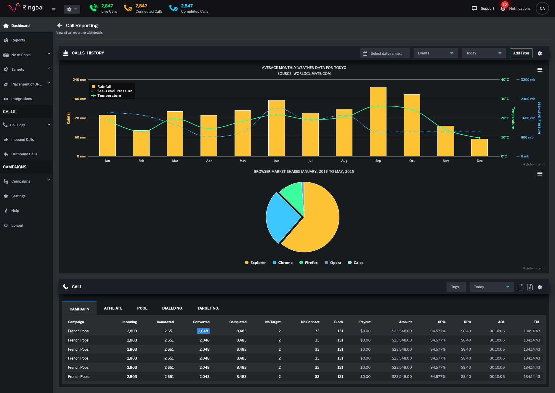 Ringba Product Design + HTML/SASS/HighCharts